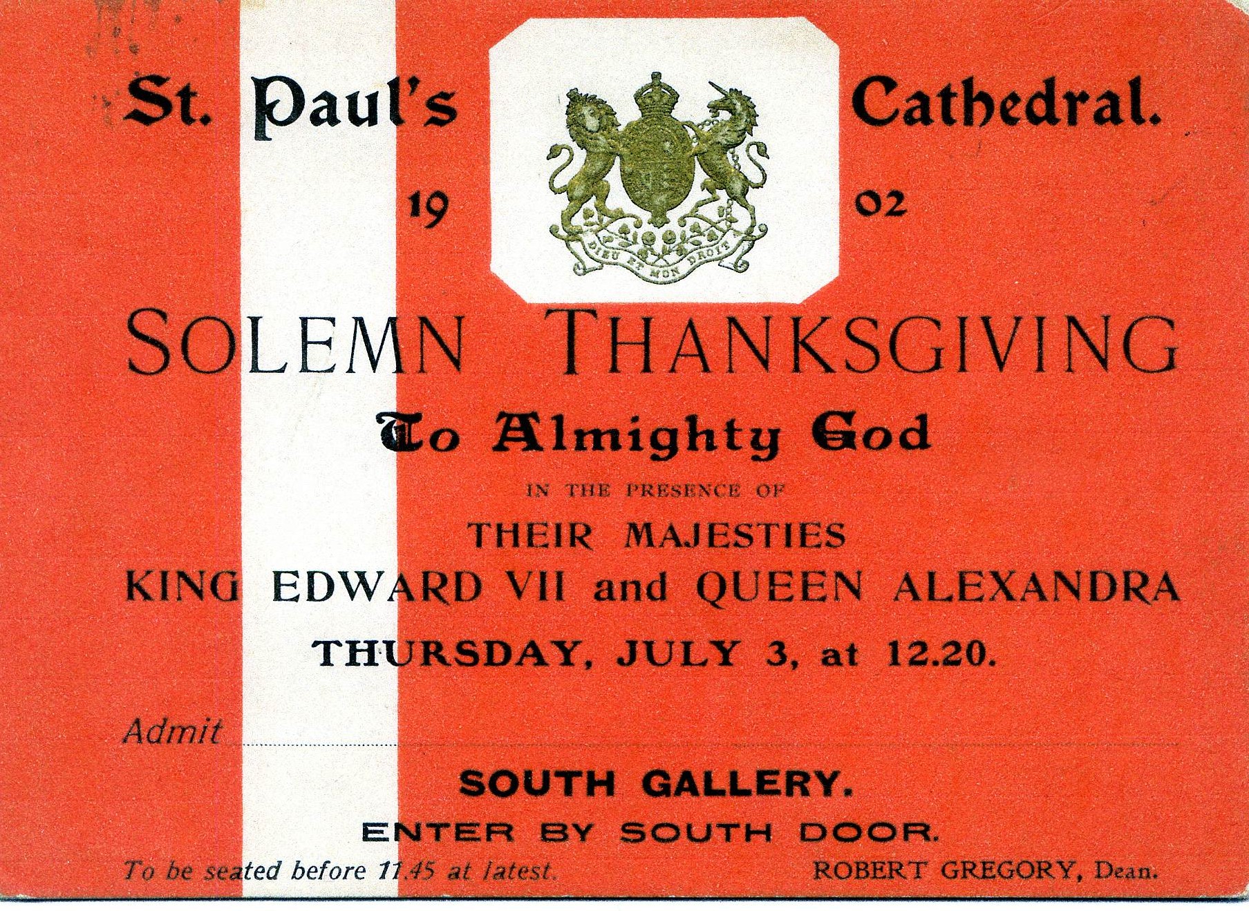 There was a service of thanksgiving at St Paul’s Cathedral on July 3rd 1902 for the king’s life and the coronation was re-scheduled for August 9th