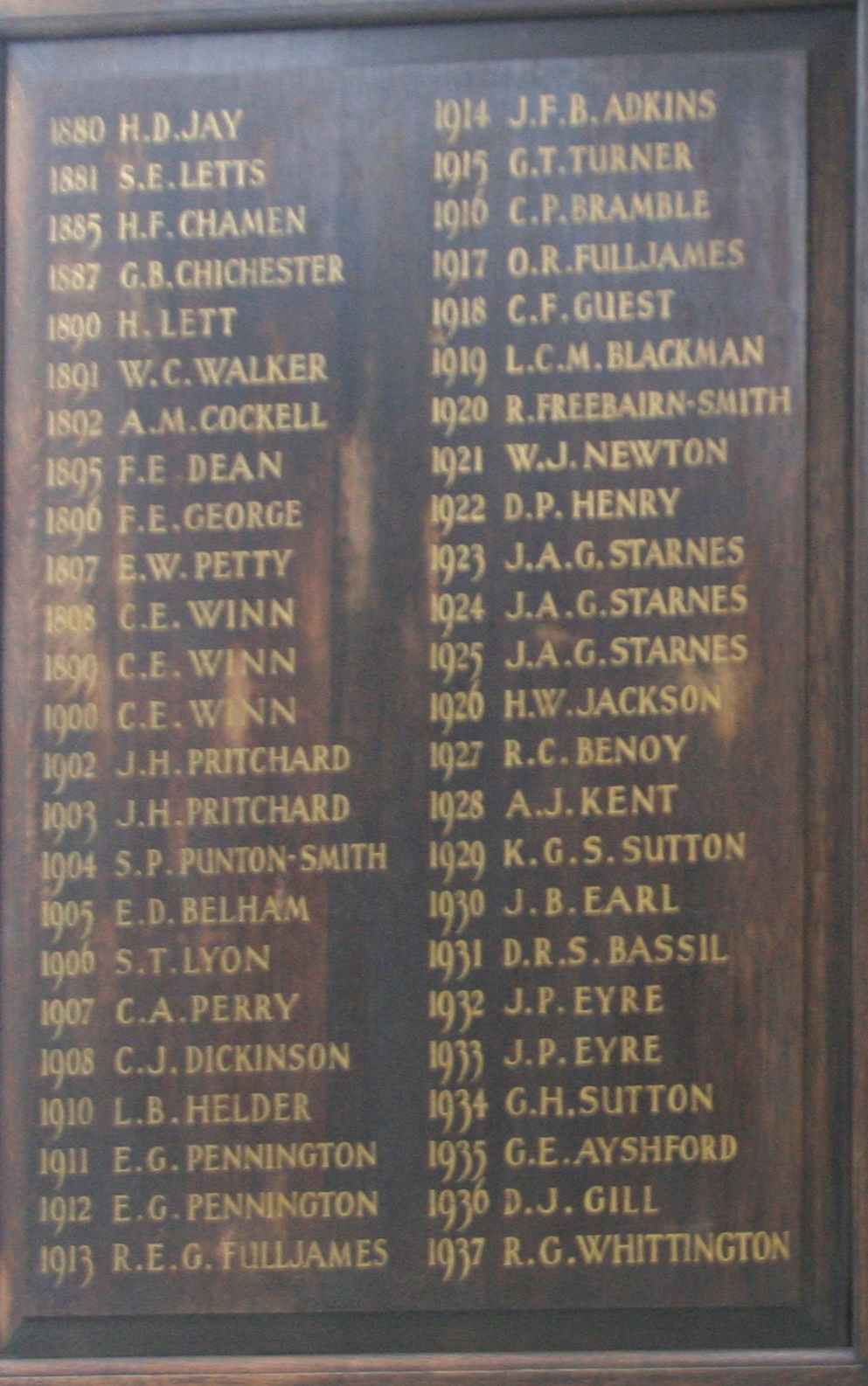 One further development for John personally in 1902 was that he was made joint Head Boy of the school along with Harold Daws. In addition, John was captain of both cricket and football. The award boards still exist and are erected in the current choir school showing John’s name in perpetuity.
